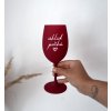 Sklenice na víno s nápisem "Úklid počká"